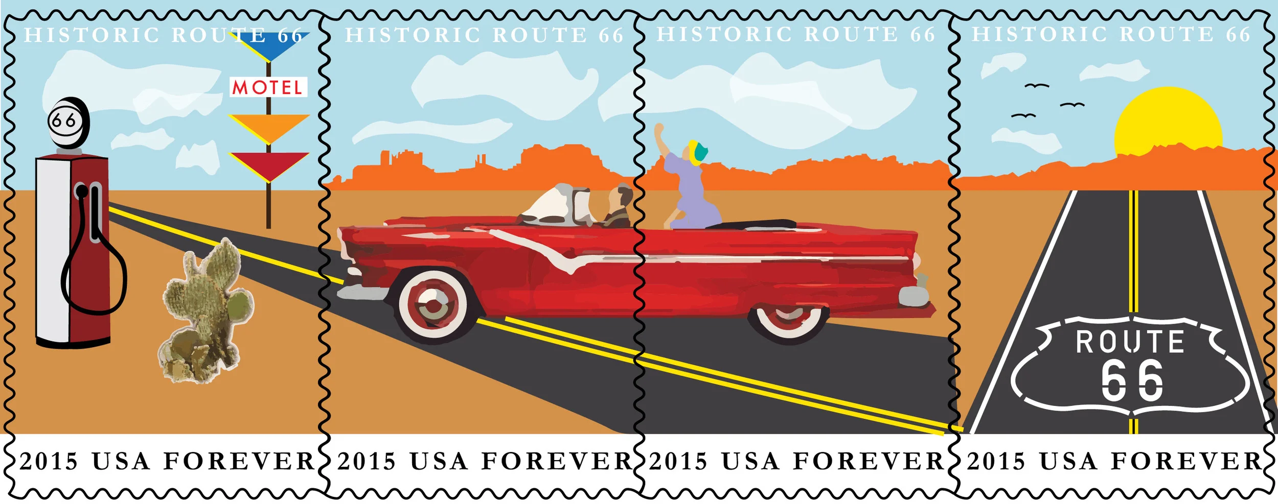 This was a project to create a cohesive stamp design for the United States Postal Service. The requirements of this assignment matched those of the USPS Postage Stamp Standards, including that the stamp reflect a significant American cultural event, tradition or movement. Inspired by my upbringing in the Southwest, I chose to showcase the world famous Route 66.